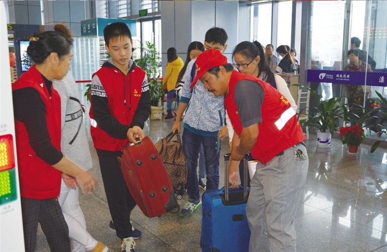 据悉,自 宁杭高铁开通 以来,该义工 协会每个周末 和节假日都会 组织志愿者进 行志愿服务。 刚上初一的曹云杰同学五年 前加入义工协会,如今每个周末都会到高铁站为旅客服务,他说:“看到别人在我的帮助下顺利出行,是一件非常开心的事。”