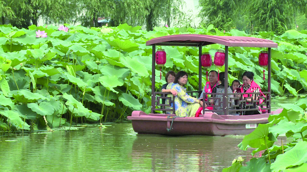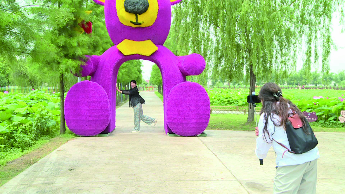 围绕一朵花,厚植荷文化。今年,平园池村有荟聚特色农产品的荷花主题市集,举办荷塘声名乐夏日草地音乐节,还新增了亲子乐园游乐项目。截至目前,平园池村已招引采摘、研学、飞行观光等新型农业经营主体34家,蹚出一条农文旅融合发展的乡村振兴之路。平园池村党总支书记刘炜建表示:“今年的游客量比往年有了很大的提高,以前星期一到星期五基本都没多少人,而今年工作日游客也是络绎不绝,外地的、本地的都有。”
