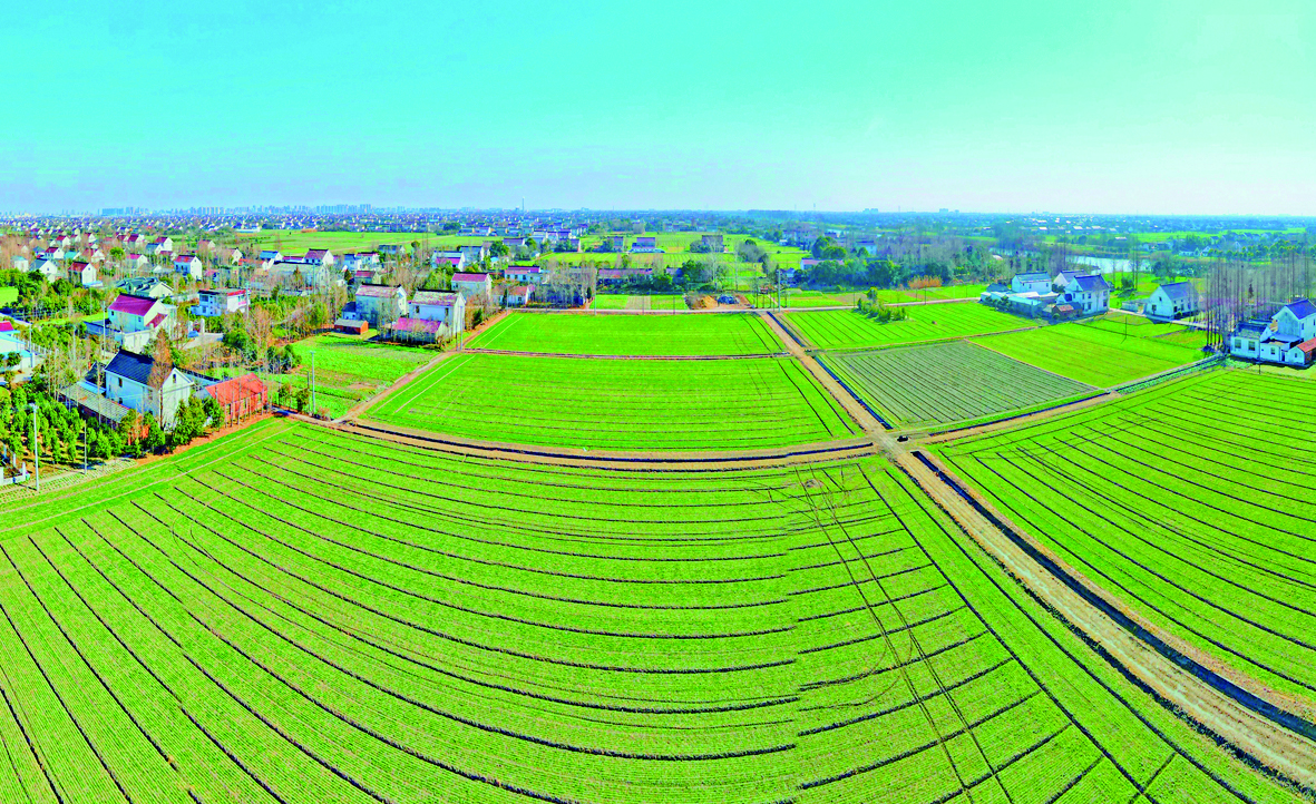 近日,从空中俯瞰位于城北街道邵庄村的高标准农田,连片种植的小麦绿意盎然,在纵横阡陌间写满了春的华章,构成一幅生机勃发的早春乡村田园画卷。