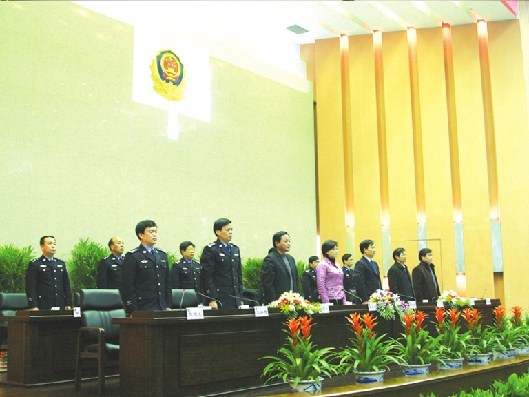韩立明强调,2010年是我市全面完成“十一五”规划目标任务的最后一年,也是夺取应对国际金融危机全面胜利的关键一年。全市公安机关要认真贯彻落实全国、全省政法工作会议精神,忠实履行第一责任,主动服务第一要务,进一步提高人民群众的安全感和满意度,为我市经济社会的又好又快发展创造更加和谐稳定的社会环境。一是坚持严打促安宁,切实提升打处绩效成果。不断加大对违法犯罪的打处力度,深入清理和整治全市治安重点地区,扫除“黄赌毒”等社会丑恶现象及其滋生土壤。二是要坚持严防促保障,努力确保大局平稳可控。加快全市设防城市建设,有效整合各种警务资源、社会资源和打防措施,全面提升社会面大巡防工作效果。三是坚持服务促发展,扎实推进社会管理创新。深化警务公开,简化审批手续,提高办事效率,拓宽服务领域,实现服务企业、服务发展、服务民生的“四个创优”,全面营造办事效率更高、办事成本更低、投资兴业更安全的创新创业环境。四是要坚持标准促规范,着力提升公正廉洁执法水平。像企业抓产品质量管理那样抓好执法规范化建设,细化执法标准,严密执法程序,做到既严格公正廉洁执法,又理性平和文明规范执法。