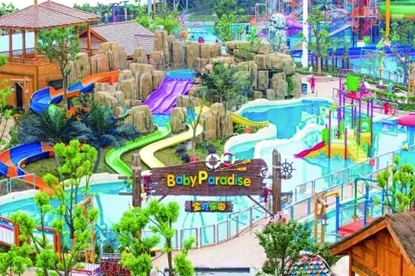 我们又来到下一个大水池。这个水池有很高的滑梯,上面还有两个超级大水桶,水满了就会倒下来,水压很大,我呛了好几口水。回头一看,好多人还坐在下面等着淋水呢。我们还玩了一个差不多有50米高的滑梯,这次是跟着水一起冲下来的,真是太刺激啦!