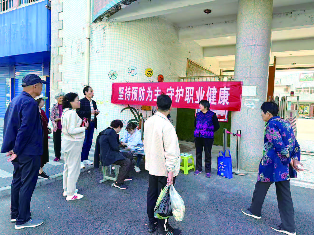2024年4月25日至5月1日是全国第22个《职业病防治法》宣传周,为做好职业病防治的宣传工作,提高劳动者自我防护的意识和能力,近日,社渚镇周城卫生院围绕“坚持预防为主,守护职业健康”宣传主题,深入集镇农贸市场开展一系列宣传教育活动,向广大群众宣传职业病防治知识。