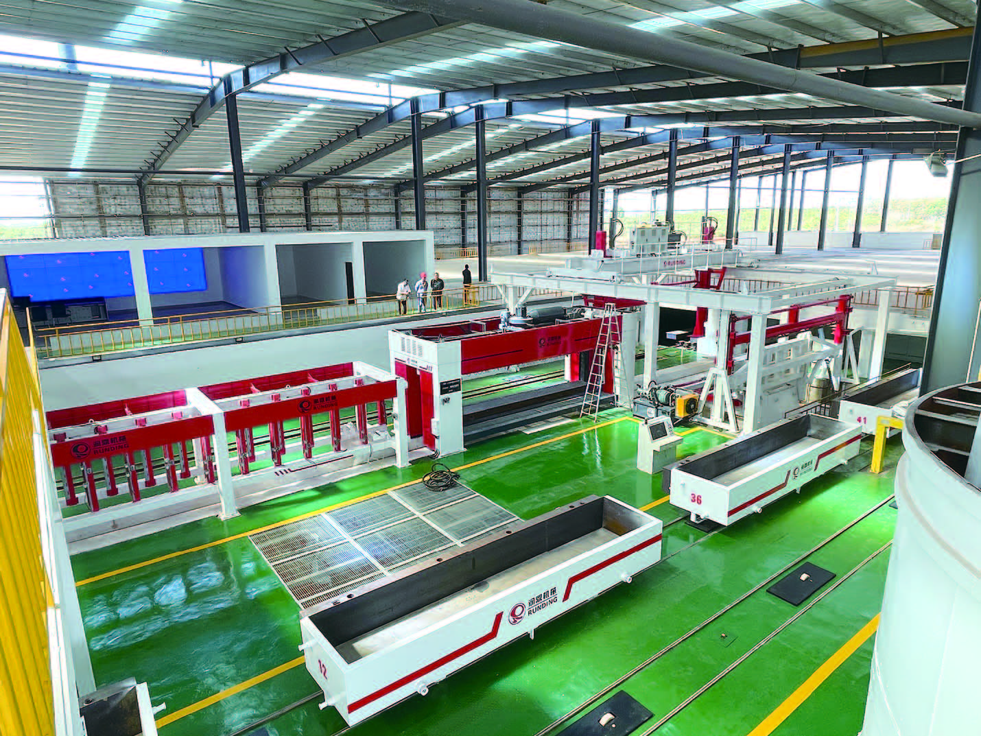 据了解,江苏润鼎在智能制造产业园新区占地120亩,生产装配式制品(ALC、PC)生产线成套智能装备,目前生产车间面积达5万多平方米,牢固确立了国内加气混凝土切割机成套设备行业内的领先地位。同时,江苏润鼎大力推行技术创新,积极引进行业精英,形成了一支分工细致、多学科交叉融合的专业研发队伍。在行业内率先将生产线做到生产节拍在2.5分钟以内稳定运行。在吸收、借鉴国际先进技术的基础上,开发了适用我国国情,不同规格系列化的加气混凝土板材生产线产品,向全球输出中国智造。