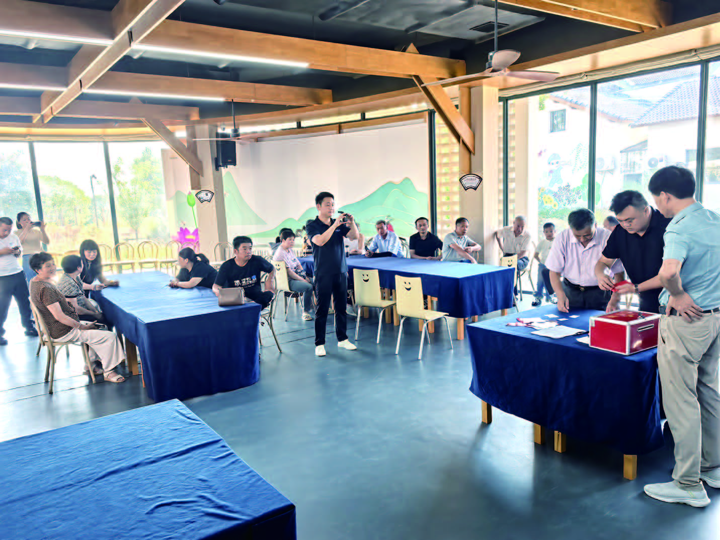一大早,参与抽签选号的村民陆续到场,在身份核验无误后,现场工作人员引导他们依次入场,有序等候。