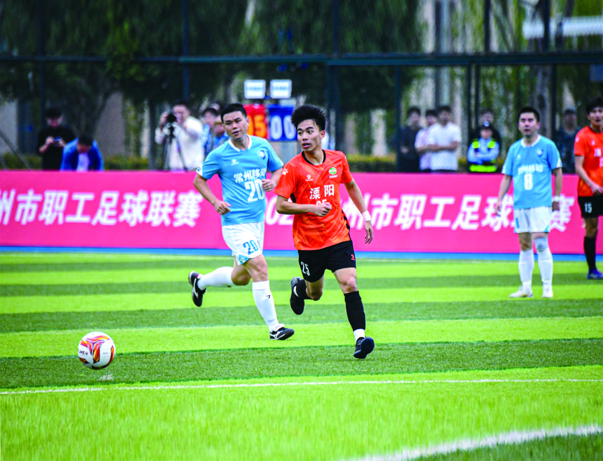 (本报综合) 9月20日下午,2025年常州市职工足球联赛溧阳赛区揭幕战——时创能源队VS常州移动队比赛在南京航空航天大学天目湖校区西操场激情开赛。
