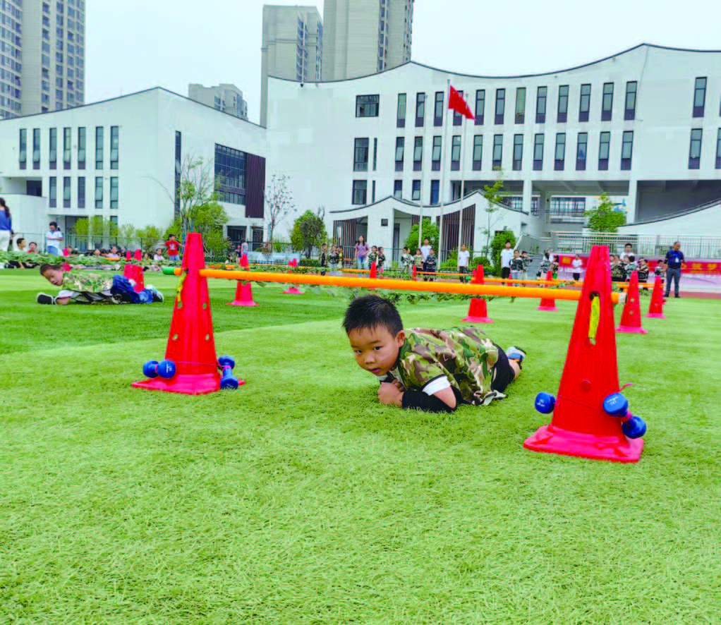 外国语小学组织4000余名学生、教师和家长代表共同参与“弘扬伟大抗战精神,汇聚民族复兴力量”主题全员运动会,以“守护小家—筑梦校园—星辰大海”为脉络,将一至六年级编为四支队伍,设置了战术迂回穿插、战术蛇形渗透、飞夺泸定桥、夺旗攻坚战等20多个运动项目,引导学生、家长和老师一同参与比赛,真正实现“人人都参与、个个肯拼搏”。“学校设置的项目都与抗战有关,让我们在运动之余感受到了革命先辈的艰苦和不易。”五年级学生李梓闻说道。