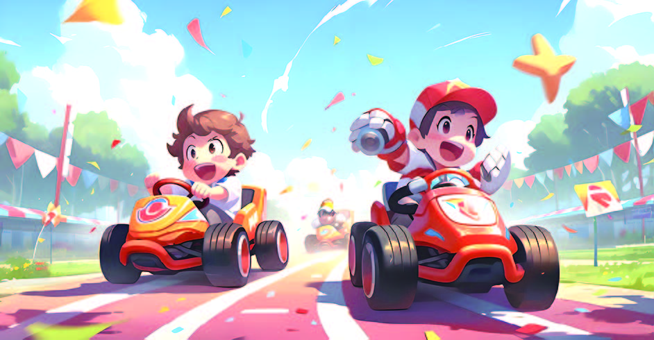 接着是第二圈,我和爸爸比赛谁开得快。爸爸提前起步,我在后面紧追。过了几个弯道,我还是追不上他。我灵机一动,想到超车办法:在每个弯道都靠近内侧行驶,减少行驶距离。快到终点下坡时,我没踩刹车,反而用力踩下油门,车子如闪电般冲了下去,我的心也跟着怦怦直跳。下坡结束瞬间,我一个漂移,成功超过了爸爸。“我胜利啦。”我激动得差点喊出声。脱下头盔时,我发现头上满是汗水。
