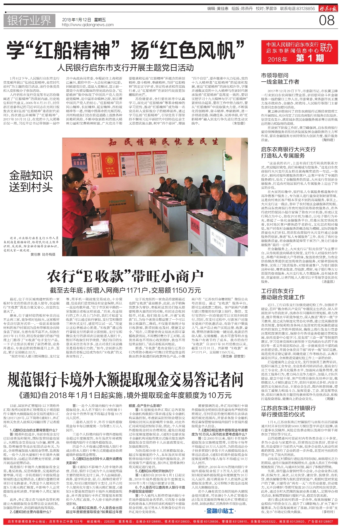 2017年12月29日下午,市委副书记、市长黄卫峰一行来到启东农商银行营业部,亲切慰问奋斗在金融服务一线的窗口工作人员,市委常委、常务副市长王康力及市政府办、金融办、财政局、人民银行等部门主要负责同志参加慰问活动。