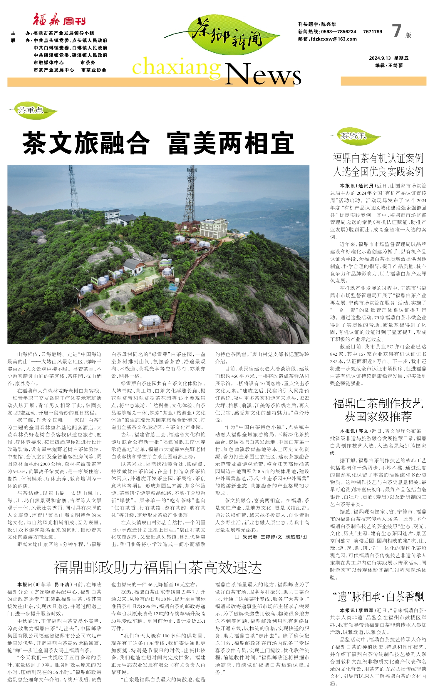 茶文旅融合,富美两相宜。在福鼎,茶是支柱产业,是地方文化,更是联结纽带。通过这根纽带,越来越多投资人、创业者融入乡野生活,新业态融入原生态,为我市高质量发展增光添彩。